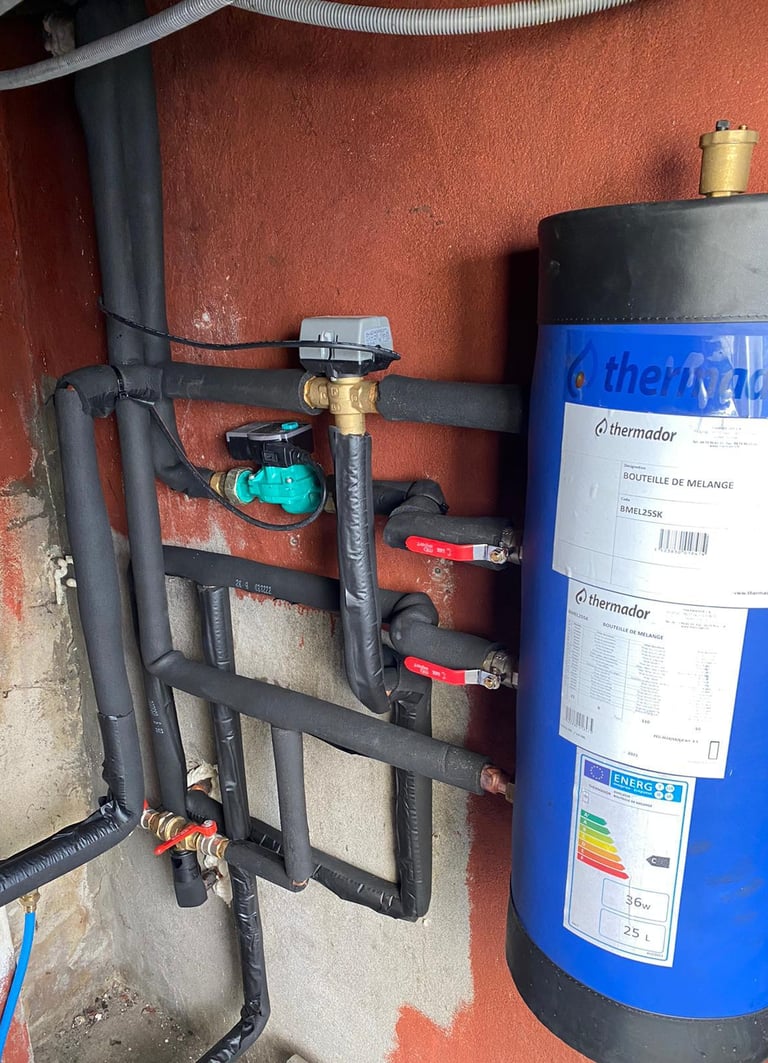 Installation avec ballon thermo dynamique et calorifugeage des réseaux